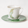 • Materiale: Porcellana di alta qualità, rifinita con accenti dorati e una base di piattino smaltato verde.